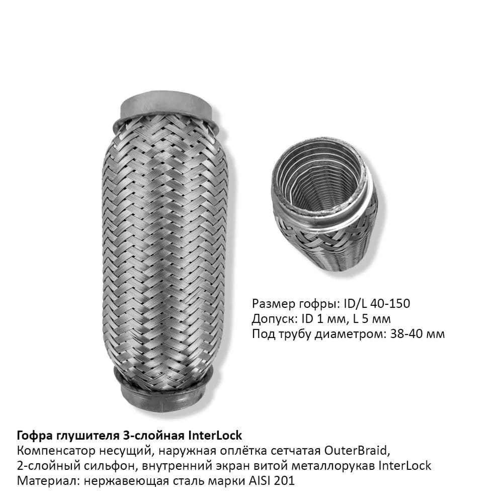 Гофра глушителя 3-слойная InterLock 40х150 – идеальный выбор для Вашего автомобиля! Купить в Гомеле данную модель можно по адресу Ефремовский авторынок, пав. 9 либо в нашем интернет-магазине https://avtozhelezka.by/. Доставка по городу от 100 рублей – бесплатная. Обеспечьте отличную работу выхлопной системы вашего автомобиля.