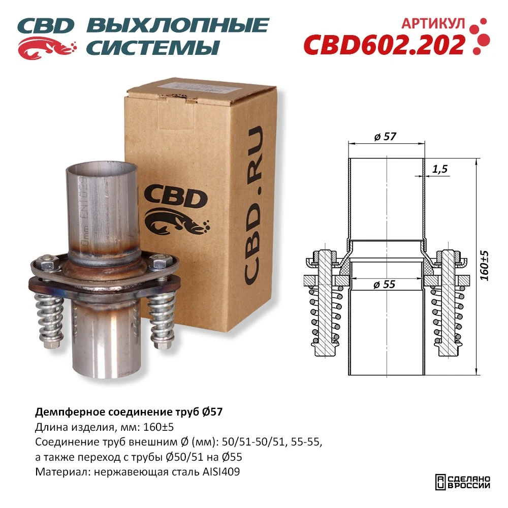 Демпферное соединение труб Ø57, L160. Нержавеющая сталь AISI 409