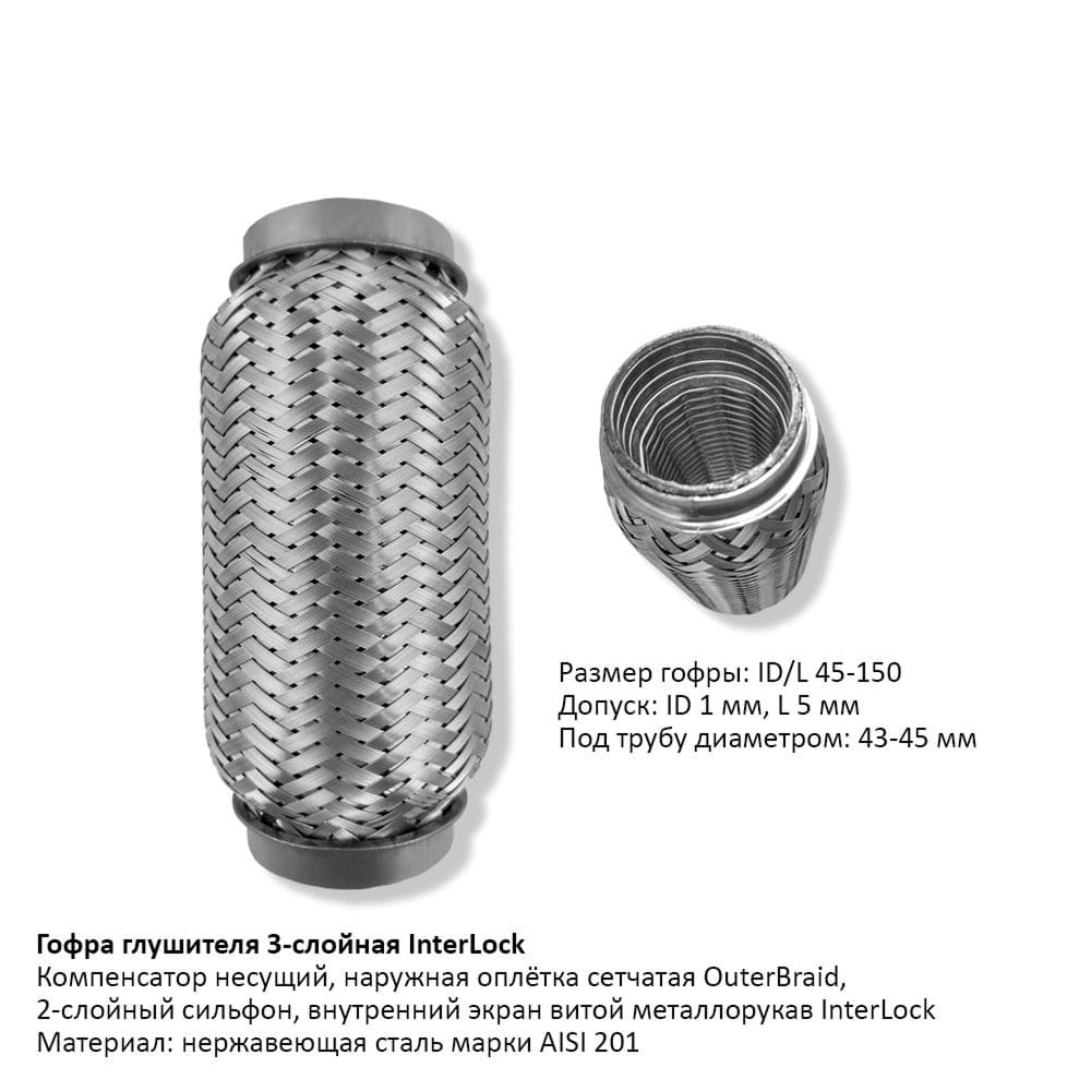 Гофра глушителя 3-слойная InterLock 45х150 – идеальный выбор для Вашего автомобиля! Купить в Гомеле данную модель можно по адресу Ефремовский авторынок, пав. 9 либо в нашем интернет-магазине https://avtozhelezka.by/. Доставка по городу от 100 рублей – бесплатная. Обеспечьте отличную работу выхлопной системы вашего автомобиля.