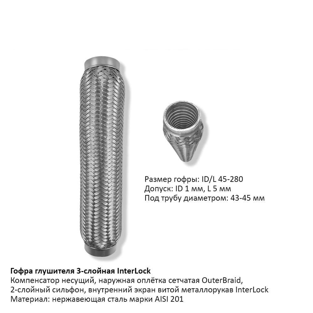 Гофра глушителя 3-слойная InterLock 45х280