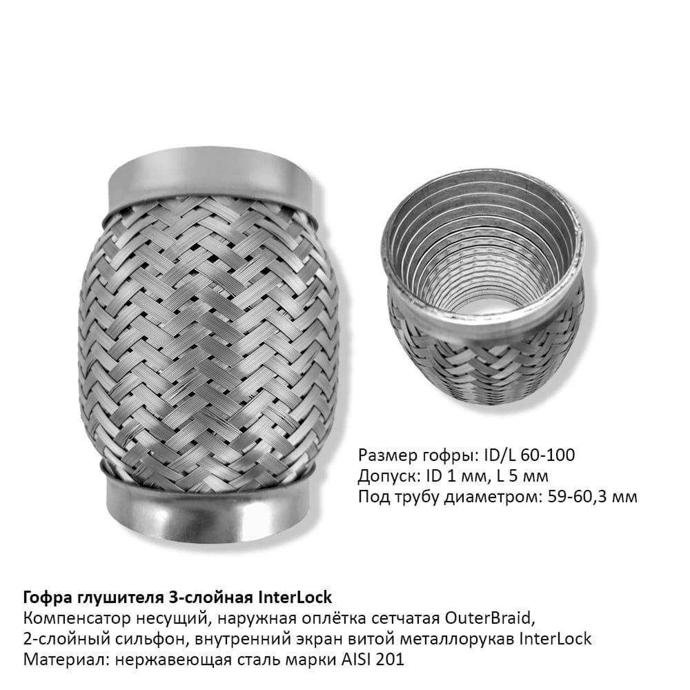 Гофра глушителя 3-слойная InterLock 60х100 – идеальный выбор для Вашего автомобиля! Купить в Гомеле данную модель можно по адресу Ефремовский авторынок, пав. 9 либо в нашем интернет-магазине https://avtozhelezka.by/. Доставка по городу от 100 рублей – бесплатная. Обеспечьте отличную работу выхлопной системы вашего автомобиля.