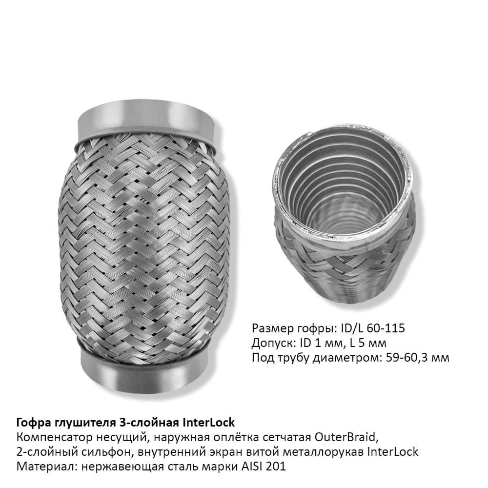 Гофра глушителя 3-слойная InterLock 60х115 – идеальный выбор для Вашего автомобиля! Купить в Гомеле данную модель можно по адресу Ефремовский авторынок, пав. 9 либо в нашем интернет-магазине https://avtozhelezka.by/. Доставка по городу от 100 рублей – бесплатная. Обеспечьте отличную работу выхлопной системы вашего автомобиля.