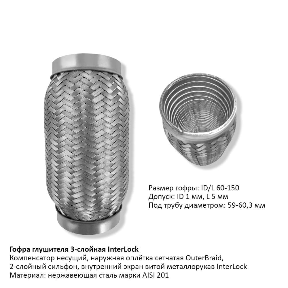 Гофра глушителя 3-слойная InterLock 60х150 – идеальный выбор для Вашего автомобиля! Купить в Гомеле данную модель можно по адресу Ефремовский авторынок, пав. 9 либо в нашем интернет-магазине https://avtozhelezka.by/. Доставка по городу от 100 рублей – бесплатная. Обеспечьте отличную работу выхлопной системы вашего автомобиля.
