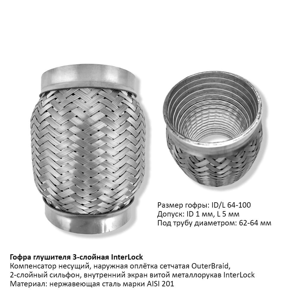 Гофра глушителя 3-слойная InterLock 64х100 – идеальный выбор для Вашего автомобиля! Купить в Гомеле данную модель можно по адресу Ефремовский авторынок, пав. 9 либо в нашем интернет-магазине https://avtozhelezka.by/. Доставка по городу от 100 рублей – бесплатная. Обеспечьте отличную работу выхлопной системы вашего автомобиля.