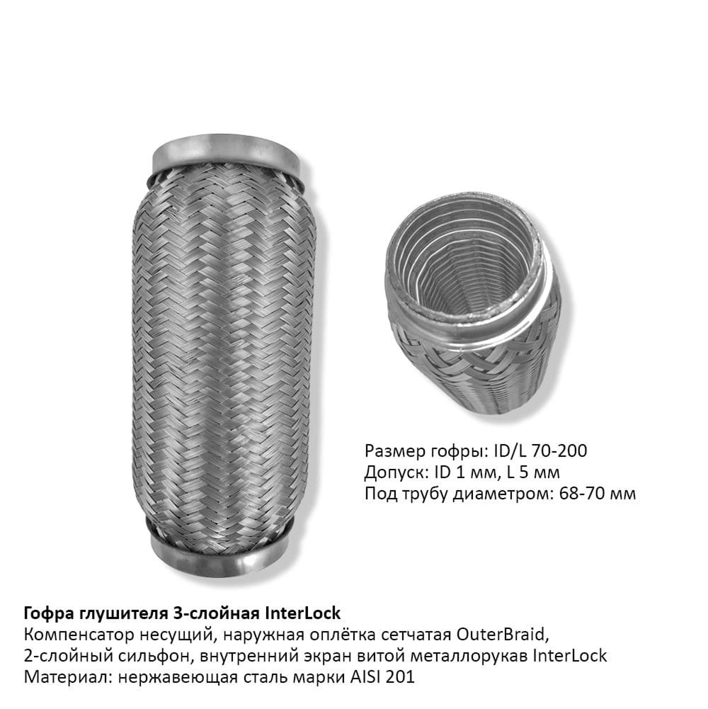 Гофра глушителя 3-слойная InterLock 70х200 – идеальный выбор для Вашего автомобиля! Купить в Гомеле данную модель можно по адресу Ефремовский авторынок, пав. 9 либо в нашем интернет-магазине https://avtozhelezka.by/. Доставка по городу от 100 рублей – бесплатная. Обеспечьте отличную работу выхлопной системы вашего автомобиля.