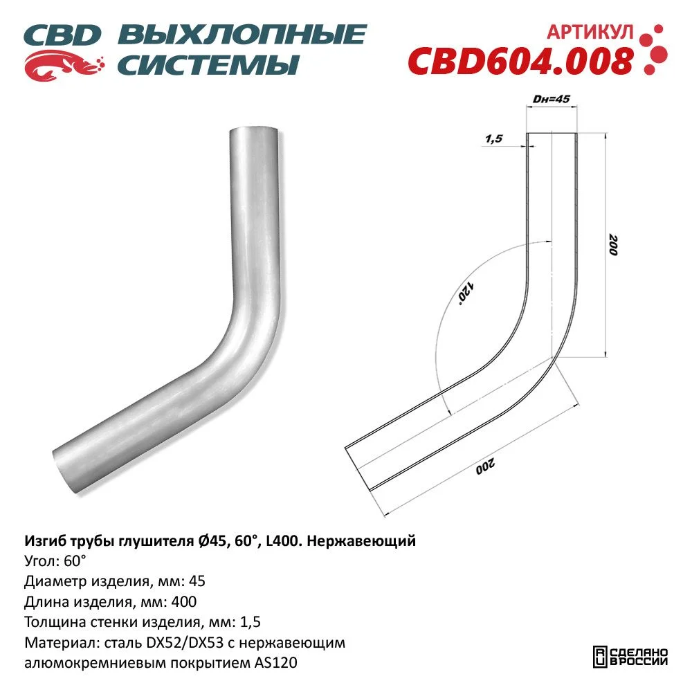 Изгиб трубы глушителя (труба Ø 45мм, угол 60°, L400)